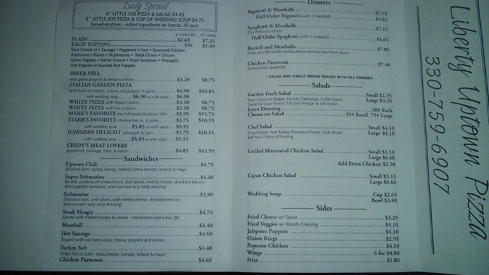 Uptown Pizza Shops Menu